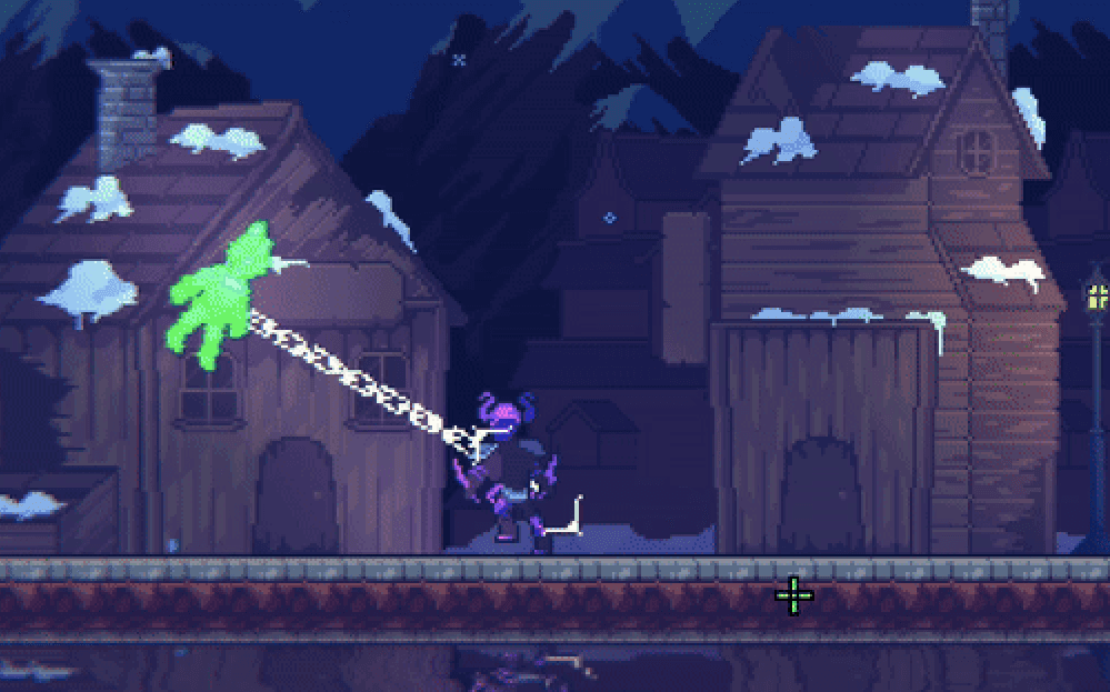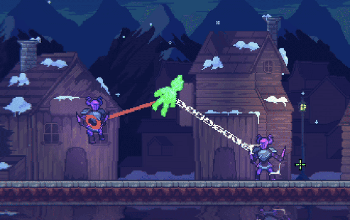 Grappling to another enemy links together the pair of enemies, turning the tether blue