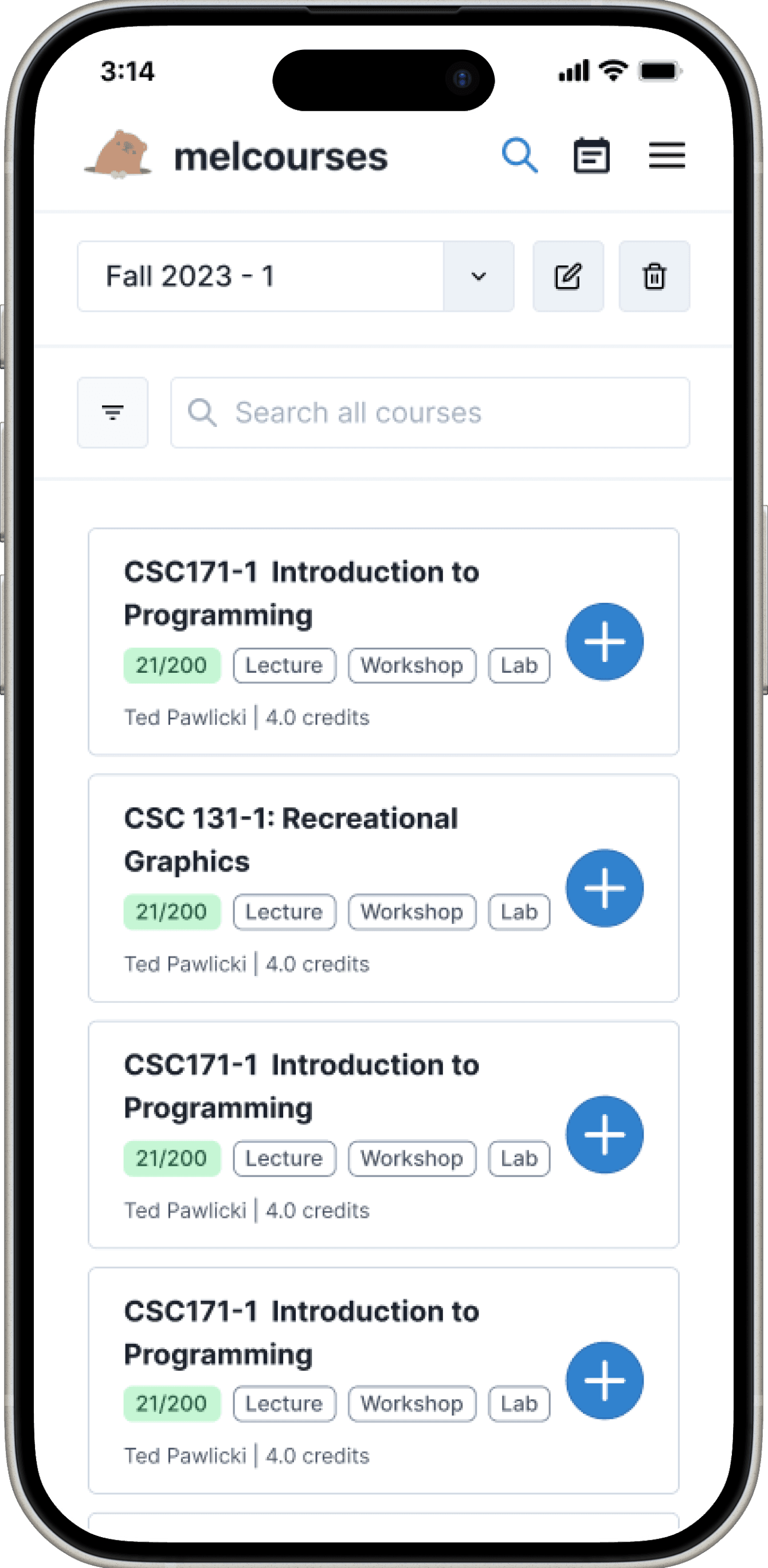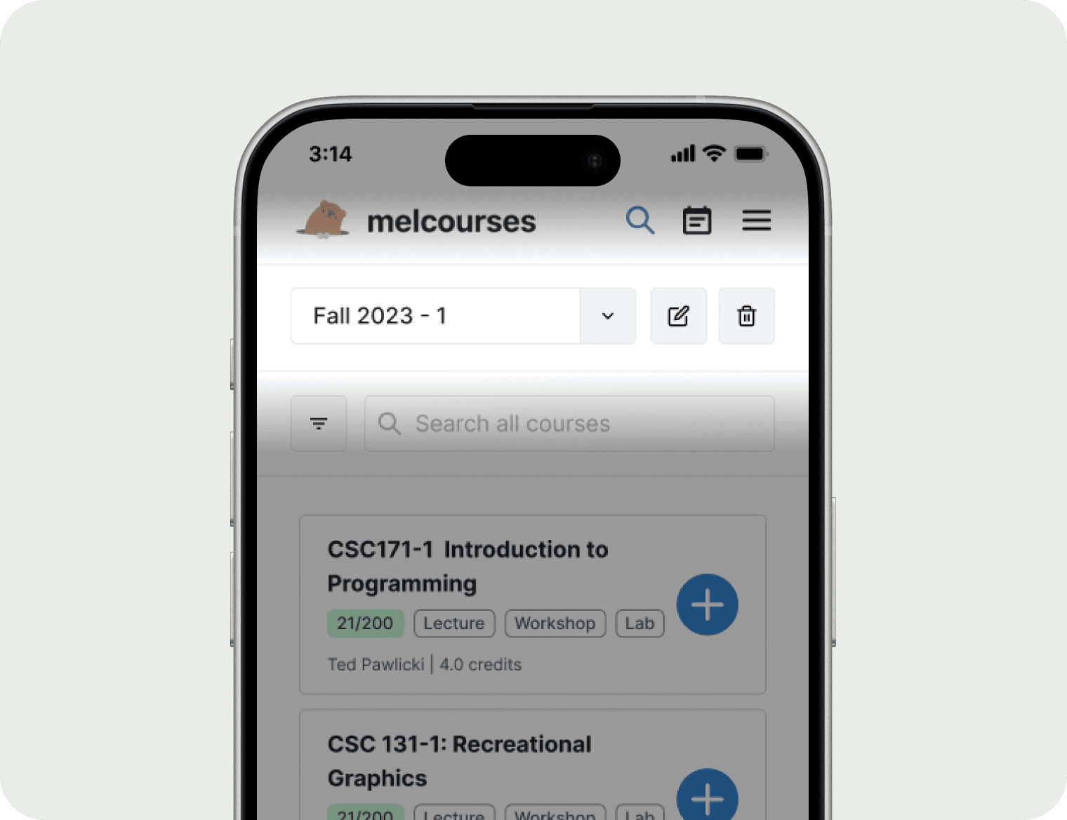 Search page - users read about courses and choose which to take