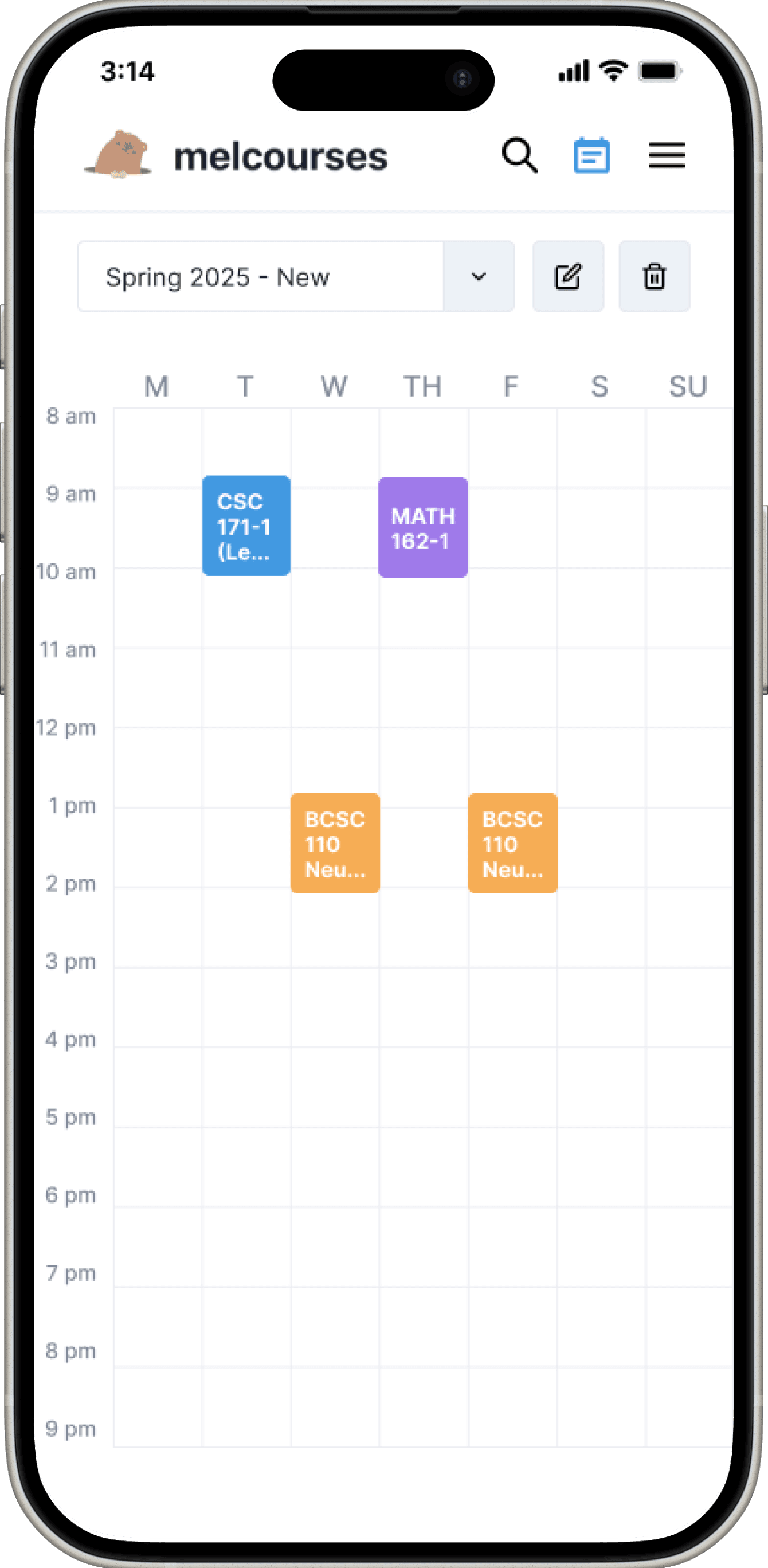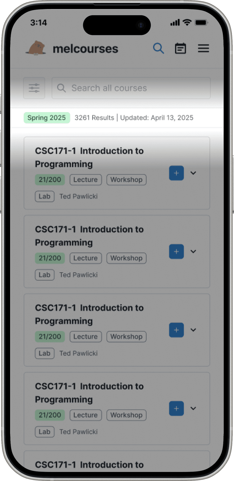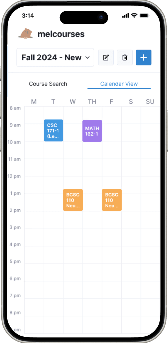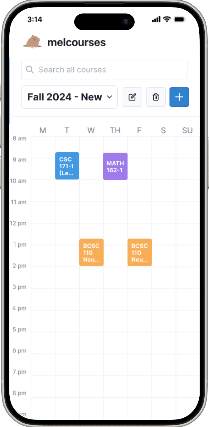 Melcourses scrapes live class data and presents it in a more usable way, letting students search for courses and create schedule plans.