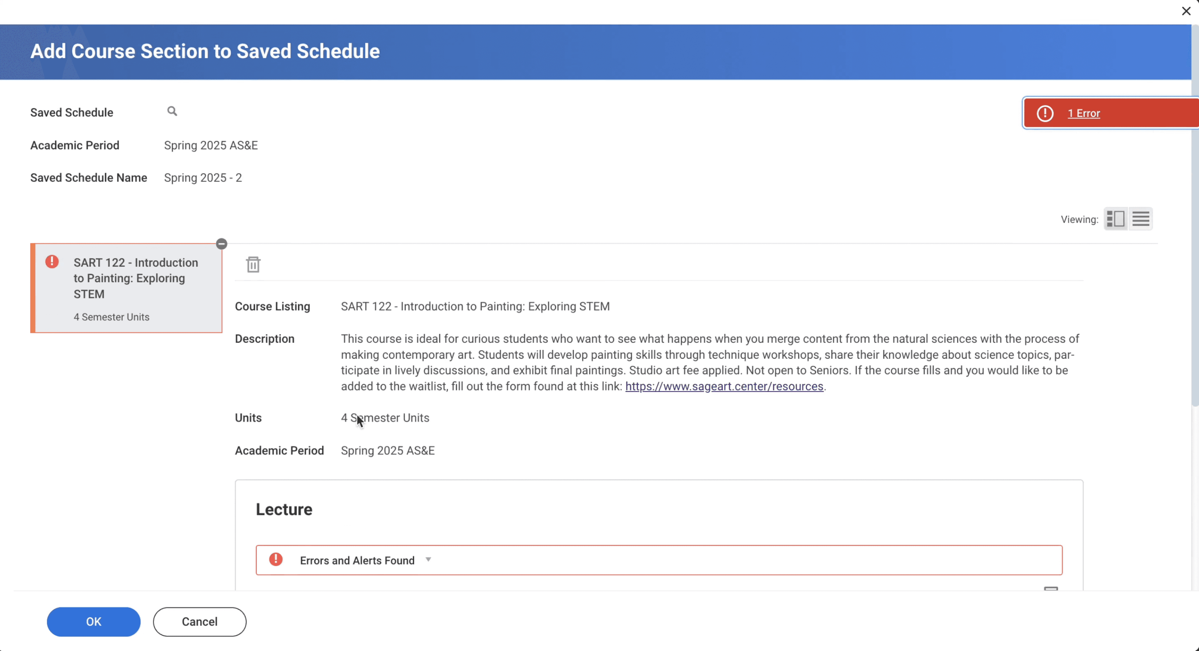 Search for a course and add it to a schedule