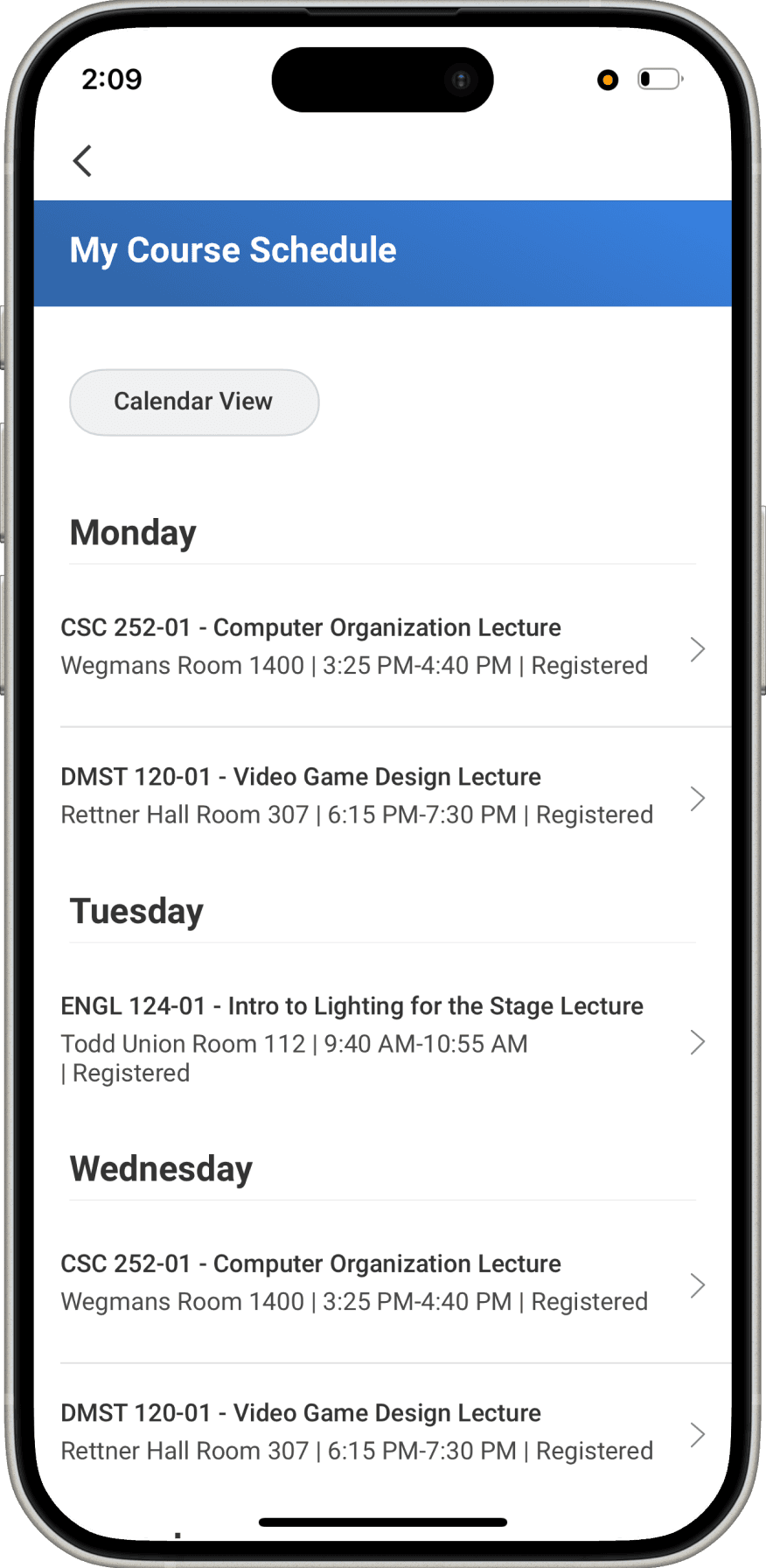 Students who want to compare schedules visually need 1 extra click to reach the calendar view.